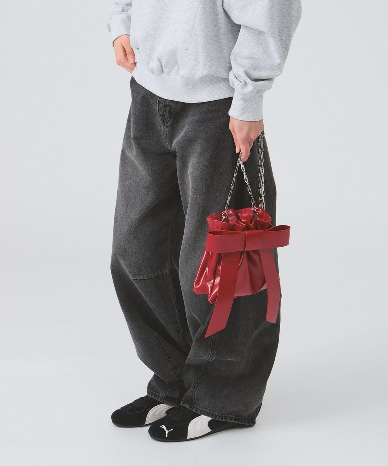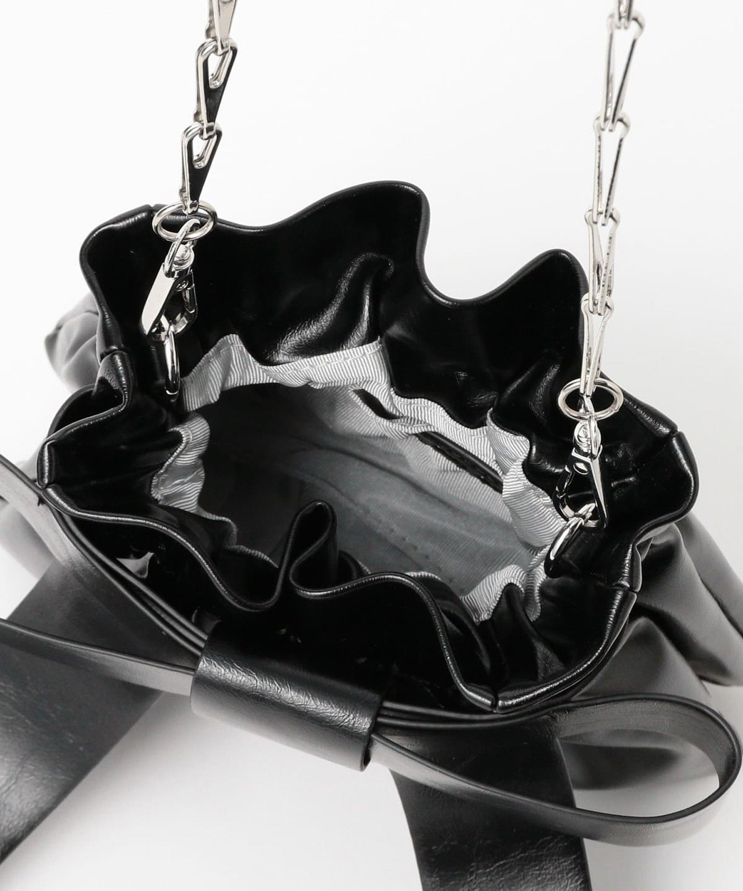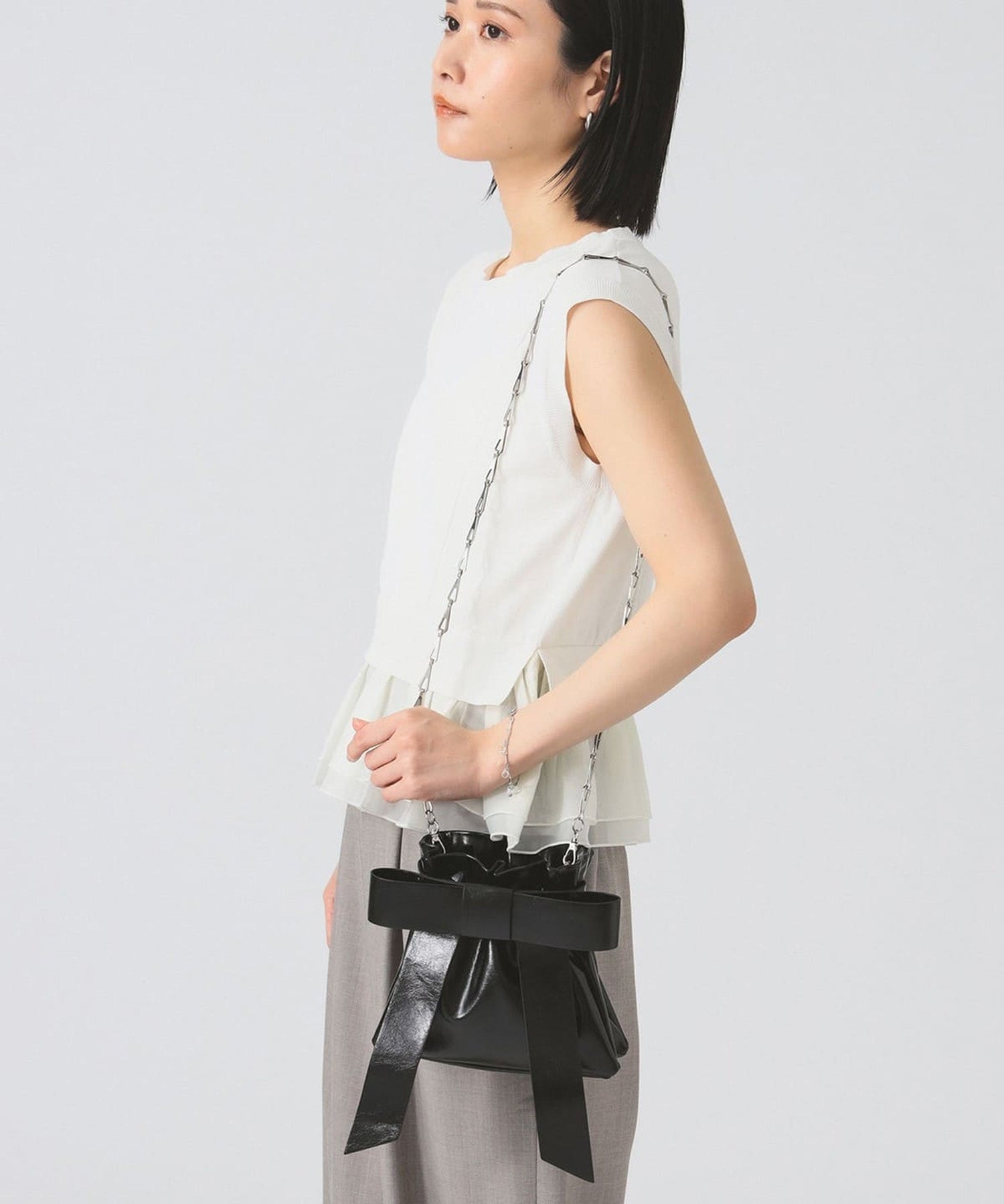 人氣爆棚的 Ray BEAMS 緞帶包款煥新升級,設計更顯迷人。搶眼的大緞帶依舊保留,奢華亮澤的材質更添優雅氣質。可拆卸的銀色鏈條設計使其百搭實用,既可單肩背,又可手拿。其低調甜美的氣質,為任何造型增添一抹魅力。